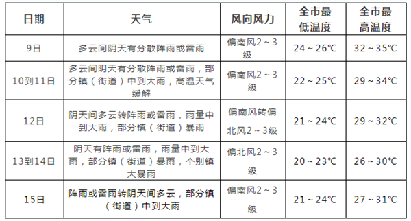 二、本周(8月9日到8月15日)全市具體天氣預報