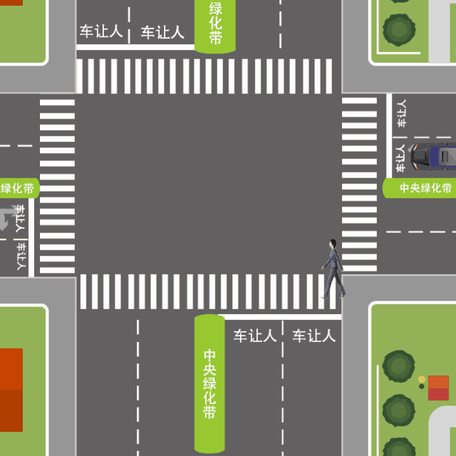 機動車行經(jīng)人行橫道時,應(yīng)當減速行駛;遇行人正在通過人行橫道,應(yīng)當停車讓行。