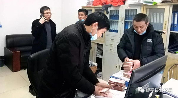 陳某兵、陳某銀兩名網上在逃人員到案后,辦案民警召集人社局、江西一建工程指揮部對其拖欠的工資核對帳目,并對犯罪嫌疑人陳某銀進行法律宣傳教育,動員其與其家屬取得聯系,盡快籌集資金,將拖欠農民工的工資交退還到農民工中,爭取從寬處理。1月28日,陳某銀家屬將籌集資金30萬元交到我局治安大隊,委托辦案民警將其拖欠工資如數發放給35名農民工,2月1至2日治安大隊辦案民警和縣人社局同志將陳某兵、陳某銀拖欠工資30萬元如數發放到35名農民工手中。
