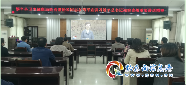 本網訊 2021年2月23日,黎平縣衛生健康局組織全體干部職工集中收看省委書記、省人大常委會主任諶貽琴同志到黎平縣調研并宣講習近平總書記視察貴州重要講話精神。