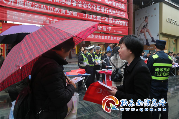 在國家安全教育日前后,各鄉鎮(街道)司法所聯合綜治辦、派出所、安監站等部門開展多形式國家安全教育普法宣傳活動。口江鄉以民族重大節慶“三月三”為契機,大力宣傳反間諜法、網絡安全法等法律法規,得到群眾一致好評。順化鄉組織村民召開國家安全教育法治講座院壩會,司法所工作人員利用少數民族語言就典型案例進行以案說法。其他各鄉鎮結合實際廣泛開展國家安全法治宣傳,在全縣營造了濃厚的宣傳氛圍。(肖明明)