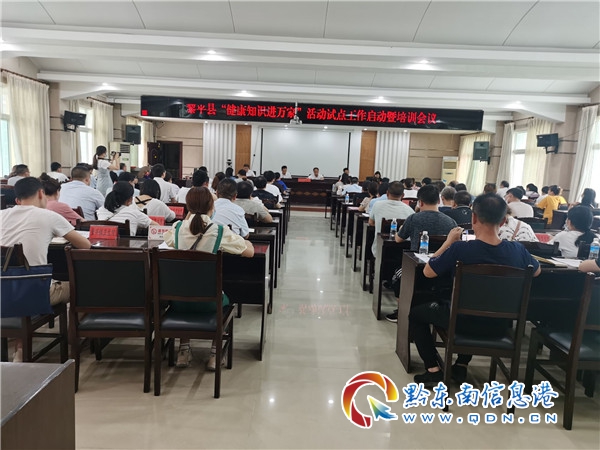 本網訊 2021年6月24日,黎平縣“健康知識進萬家”活動試點工作啟動暨培訓會議在縣衛生健康局四樓會議室召開,縣衛生健康局、縣計劃生育協會相關人員,縣疾控中心及各鄉鎮(街道)衛生院(社區衛生服務中心)、計劃生育協會“健康知識進萬家”小程序管理員共計90余人參加會議。