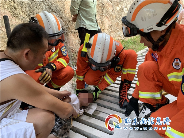本網訊 8月4日18時34分黎平縣消防救援大隊接到群眾報警稱:黎平縣德鳳街道南泉山籃球場旁有一小孩手臂卡在下水道蓋板內,被下水道蓋板死死“咬住”,請求幫助。接到報警后,黎平縣消防救援大隊迅速出動2車10名指戰員趕赴現場進行救援。