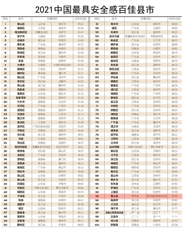 據(jù)了解,“2021中國最具安全感百佳縣市”除直轄市所含區(qū)與港澳臺(tái)地區(qū)以外,涵蓋了全國 2757個(gè)縣域行政單位。榜單實(shí)行全網(wǎng)數(shù)據(jù)解析:設(shè)立自2020年9月1日至2021年8月31日的信源區(qū)間,設(shè)定網(wǎng)絡(luò)數(shù)據(jù)評(píng)榜維度,設(shè)立社會(huì)治安、生態(tài)安全、雪亮工程、居民幸福感等120個(gè)關(guān)鍵詞標(biāo)簽;得自互聯(lián)網(wǎng)和移動(dòng)互聯(lián)網(wǎng)的數(shù)據(jù),全程采集的客觀資訊信息超過1億條。最終以網(wǎng)絡(luò)大數(shù)據(jù)、縣域?qū)n}調(diào)研、社會(huì)公眾態(tài)度和專家評(píng)審進(jìn)行加權(quán),經(jīng)綜合測(cè)評(píng)得出“2021中國最具安全感百佳縣市”,這也是雷山縣繼2020年以94.25分榮登“2020中國最具安全感百佳縣市”第16名后再次獲此殊榮。