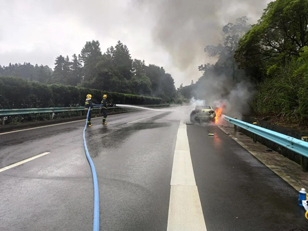 2021年5月29日,黔東南麻江縣高速公路往都勻方向一輛行駛過(guò)程中的汽車發(fā)生自燃。