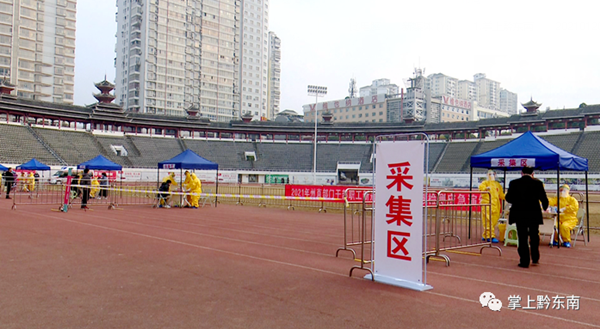 記者在凱里民族體育場檢測點采訪了解到,這個檢測點在今天將完成來自24家州直單位的2160人的核酸檢測,整個檢測點被分為了等候區、采集區、緩沖區和臨時隔離區,所有的待檢人員在等候區這里等待、登記,他們被要求保持一米的安全距離,在進入了采集區之后,將會由身著防護服的工作人員對他們完成樣本采集和登記記錄。