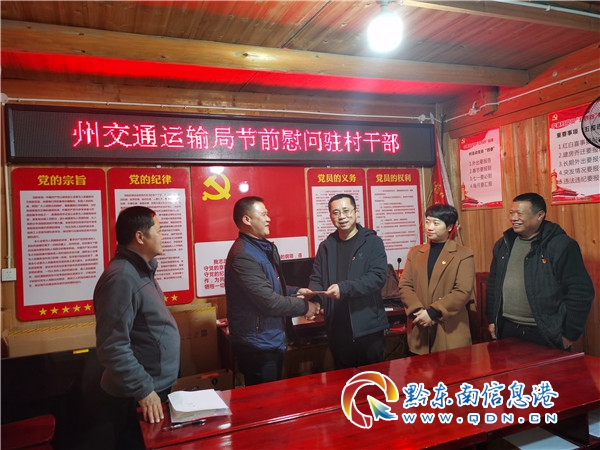 在幫扶聯系村與駐村工作隊員座談時,慰問組人員認真聽取了駐村工作隊員工作和生活情況的匯報,詳細詢問了他們在工作生活上遇到的困難與問題。“每逢佳節倍思親”,春節是中華民族最隆重的傳統佳節,是萬家團圓的日子,州交通運輸局組織開展這次活動,正是為了貫徹落實省、州關于春節期間開展走訪慰問活動部署要求,對駐村一線干部關懷備至的體現。