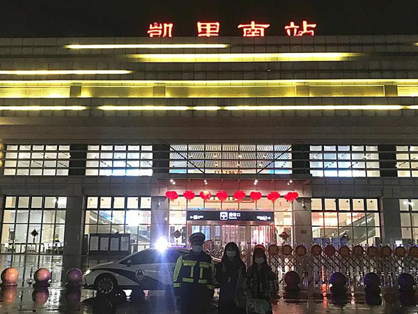 了解到事情原委后,出警民警一邊安慰她們,一邊詢問她們希望得到什么幫助,在得知她們想到高鐵站乘坐高鐵后,民警立即向大隊(duì)領(lǐng)導(dǎo)請示表示將女孩送到附近的凱里高鐵站。