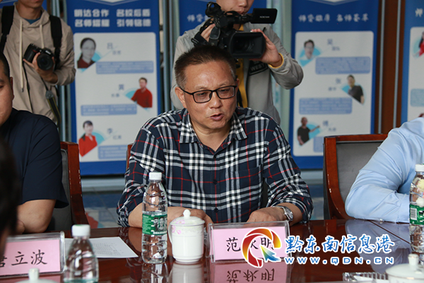 座談會上,黔東南州銘德高級中學校長范秋明代表學校對州、市級各位領導的到來表示熱烈的歡迎,并介紹了長沙市明達中學近年來的辦學發展歷程,作為湖南省一流民辦教育首次入黔合作辦學,力將在黔東南州打造一所“高端、優質、特色”的現代化學校。同時,就黔東南州銘德高級中學辦學理念與規模、文化建設、發展規劃等工作進行匯報。學校執行校長陳鐵夫匯報了學校前期籌備情況。