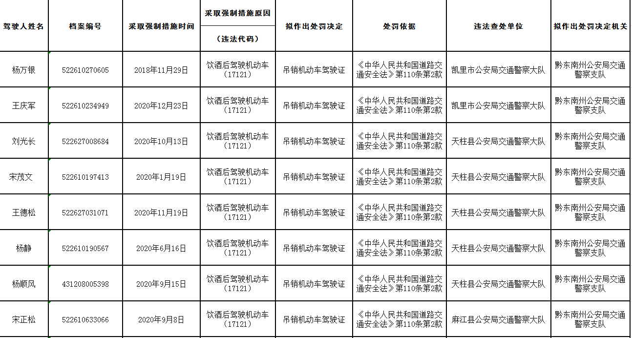 自公告之日起7日內,機動車駕駛人可以到黔東南州公安局交通警察支隊依法提出聽證申請。逾期未提出申請的,本機關將依法吊銷機動車駕駛證。