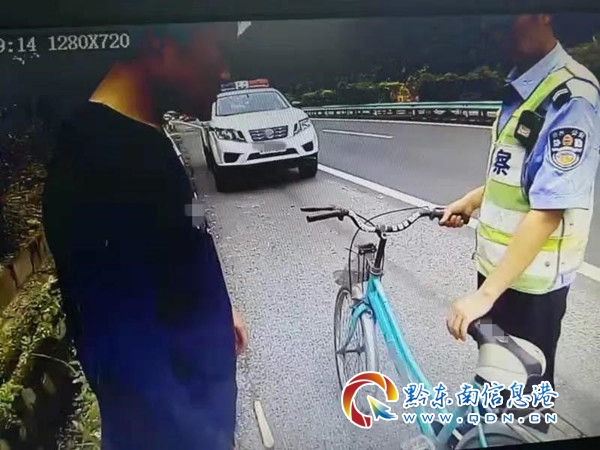 本網訊 5月27日,黔東南州公安局交警支隊高速四大隊值班室接到群眾電話報警稱:“在滬昆高速凱里往劍河方向有人在超車道上騎自行車,情況很危險,請出警處置”。