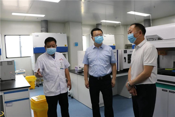 羅強一行先來到黔東南州新冠病毒核酸檢測城市檢測基地視察工作,實地查看了核酸檢測流程、詳細詢問了核酸檢測能力、隔離病房設置、醫(yī)護人員的培訓、醫(yī)療設備的配備等,羅強對州人民醫(yī)院疫情防控及院感工作的硬件設施、物資儲備、隔離病房設置、核酸檢測能力給予了充分的肯定,同時他強調要清醒認識當前疫情防控形勢,醫(yī)院一定要緊繃疫情防控之弦,從嚴從緊落實各項疫情防控措施,切實筑牢“外防輸入、內防反彈”防線,醫(yī)務人員要站好每一班崗,守好每一份責,護好每一個生命,繼續(xù)為全州人民的身體健康保駕護航。