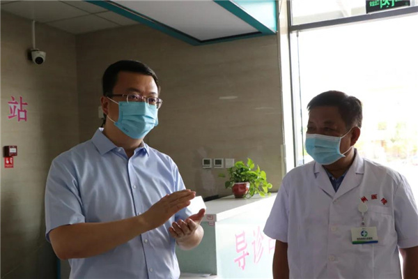 隨后,羅強一行又來到院區(qū)進行調研,每到一處他都詳細詢問了預檢分診工作、疫苗接種流程、疫情防控注意事項,并查看了發(fā)熱門診、留觀病房等重點區(qū)域。羅強在調研中反復強調,外防輸入是疫情防控的重中之重,醫(yī)院要時刻繃緊思想之弦,堅決克服麻痹思想,進一步壓實“四方”責任,健全常態(tài)化防控和應急處置轉換機制,毫不松懈把各項防控要求落到實處,堅決守住來之不易的疫情防控成果。
