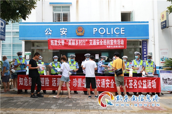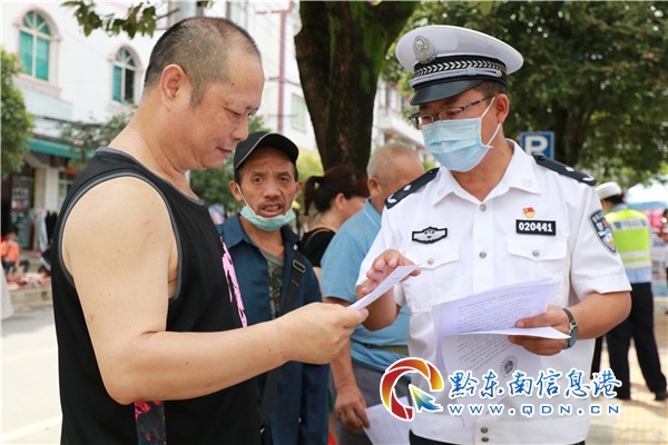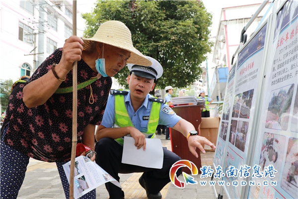 黔東南州公安局黨委委員、交警支隊長肖文斌、副支隊長黃銳到現場指導并參加宣傳活動,他們向廣大群眾講解和分析了交通事故發生的原因及交通違法行為的危害性,告誡農民朋友切勿圖一時方便,搭乘三輪車、低速載貨汽車、無牌無證車輛及其他有安全隱患車輛。并帶頭在“知危險、會避險、遠離違法、珍愛生命”交通安全千萬人簽名公益活動布上簽名。