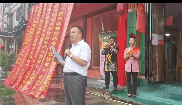 黔東南州餐飲服務行業協會會長楊昌勇等也上臺發言,闡述了協會的宗旨,未來構想等。