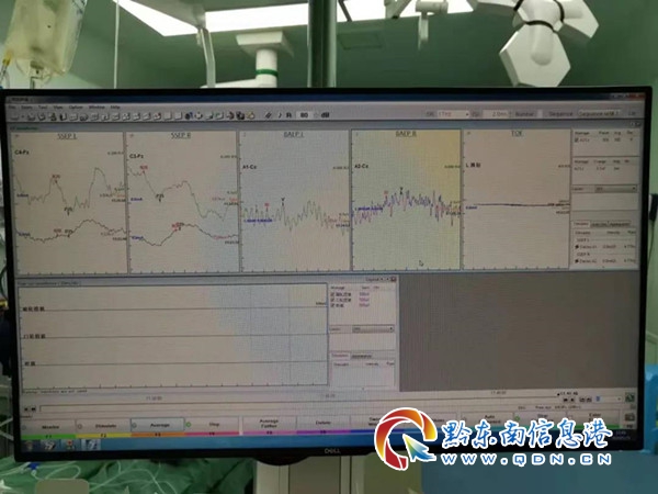 本網(wǎng)訊 8月2日與往常一樣,安靜的手術(shù)室里,黔東南州人民醫(yī)院神經(jīng)外科主任陸斌帶領(lǐng)團(tuán)隊(duì)在有條不紊地進(jìn)行一臺(tái)聽神經(jīng)瘤切除術(shù)。這時(shí),正在進(jìn)行術(shù)中神經(jīng)電生理監(jiān)測(cè)的醫(yī)生卻發(fā)現(xiàn)異常,趕緊提醒主任:“主任,患者口輪匝肌出現(xiàn)了運(yùn)動(dòng)單元,請(qǐng)注意面神經(jīng)的保護(hù)”。聽到提醒,陸主任馬上調(diào)整了操作方式,相關(guān)監(jiān)測(cè)數(shù)據(jù)迅速恢復(fù)正常。接下來(lái),在主任及團(tuán)隊(duì)醫(yī)師更加小心地操作中,手術(shù)得以順利完成。而在手術(shù)中讓醫(yī)生更加全面掌握患者神經(jīng)功能狀況的技術(shù),就是該院新引進(jìn)的神經(jīng)電生理監(jiān)測(cè)技術(shù),此項(xiàng)新技術(shù)的引進(jìn)有效填補(bǔ)了黔東南州在這一領(lǐng)域的技術(shù)空白。