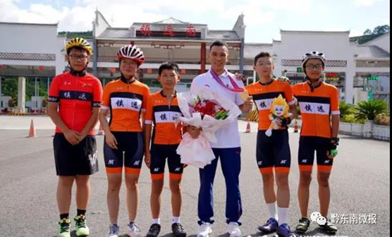 當天,鎮遠縣自行車運動協會自發來到鎮遠南站出口處,迎接米久江的到來。現場既有鮮花與掌聲,也有大家熱愛的自行車。大家騎著自行車,穿行在公路上,以示慶祝。