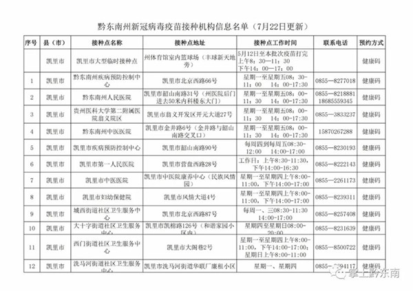 因受疫苗供應影響,在您去接種點接種前,請您提前咨詢接種點,是否有適合你接種的疫苗,避免您到接種點后沒有相應的疫苗而跑空。全州264個接種點的聯系方式見附表。