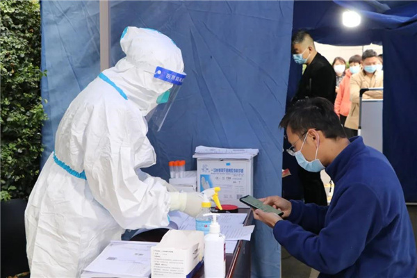 “請戴好口罩,保持1米線距離,請有序進行核酸采樣。”發熱門診護士吳金玲每天要重復這句話上千次,喉嚨經常都喊到“冒煙”,她和同事們分三班倒,24小時進行核酸采集,隨著近段時間異常碼的增多,吳金玲每天要不厭其煩地給病人解釋,對只有身份證沒有手機的老人,她們全部用自己的手機幫老人登記數據、采集核酸、標本收集,一氣呵成,既專業又敬業。吳金玲說:“只要能保護好這座城市,累一點沒關系,我們雖然累,但市民們積極排隊來檢測更不容易,大家的目的都是一致的,團結一心、防控疫情。”