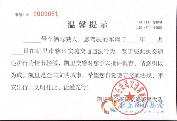創新“柔性”管理舉措 釋放交管執法“溫度”----黔東南州公安局創新實施輕微交通違法溫馨提示舉措