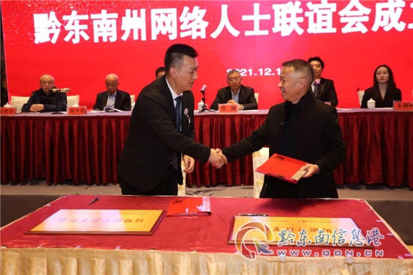 成立大會上,邵剛同志和省委統戰部有關負責同志分別向黔東南州網絡人士聯誼會授牌、授旗。