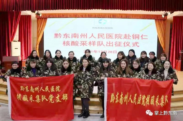12月28日晚先后接到省級(jí)通知后,當(dāng)晚立即從州人民醫(yī)院、貴州醫(yī)科大學(xué)第二附屬醫(yī)院(州第二人民醫(yī)院)、黔東南州中醫(yī)醫(yī)院和凱里市、施秉縣、三穗縣和劍河縣醫(yī)療衛(wèi)生機(jī)構(gòu)抽調(diào)104名核酸采樣人員支援銅仁市。12月28日22時(shí)許,各采樣支援隊(duì)在指定地點(diǎn)完成集結(jié),舉行隆重而簡短的出征儀式后,奔赴銅仁市協(xié)助開展全員核酸檢測工作,此次派出的抗疫隊(duì)伍涵蓋公共衛(wèi)生、院感控制、重癥醫(yī)學(xué)、中醫(yī)、檢驗(yàn)等多個(gè)領(lǐng)域的醫(yī)生、護(hù)士和技術(shù)人員。他們中有奔赴遵義抗擊新冠疫情的“老兵”,也有進(jìn)駐過省將軍山醫(yī)院、援助湖北鄂州的抗疫專家,他們的防疫經(jīng)驗(yàn)十分豐富。