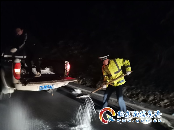 漆黑的深夜,氣溫降至零度以下,吹著寒風的天空飄灑著雨夾雪,口鼻呼出的熱氣瞬間被嚴寒凝固。寒風雖凌厲,但民警始終堅守路面,用凍僵的雙手、雙腳為群眾指引行車方向、丈量安全距離。在凝凍的路面小心翼翼的播報路況、撒鹽融冰、疏導車輛和救助群眾。時而因路面太滑溜起了冰,時而因重心不穩(wěn)而摔倒,他們說這是凝凍時少不了的畫面。