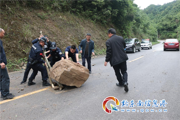 本網訊 施秉縣公安局特巡警大隊及時清除山體滑坡大石,保障道路安全暢通獲贊。