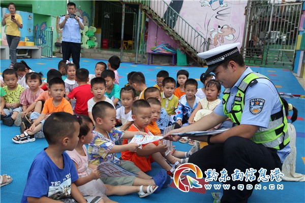 本網訊 為進一步做好暑假期間交通安全宣傳教育工作,讓孩子們度過一個平安快樂的暑假。7月8日,貴州省黔東南州施秉縣公安局交警大隊民警走進轄區世紀陽光幼兒園,開展“知危險、會避險,拒絕違法、遠離事故,平安交通、快樂暑假”交通安全主題宣傳活動,進一步提高孩子們交通安全意識和自我保護意識。