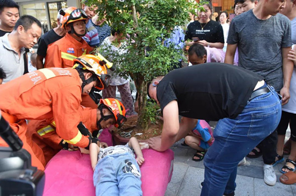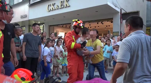 消防指戰員成功將小男孩救出