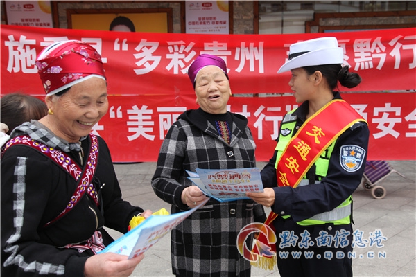 本網訊 10月26日,貴州省施秉縣2021年“民族團結進步宣傳教育活動月”宣傳活動在雨石水街廣場舉行。縣公安局交警大隊積極參與,通過懸掛橫幅、擺放展板、發放宣傳資料、設立咨詢點,結合“多彩貴州、志愿黔行”“美麗鄉村行”等主題活動,開展交通安全宣傳。