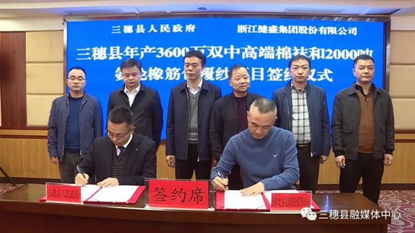 據悉,此次該縣與浙江健盛集團有限公司簽約的年產3600萬雙中高檔棉襪和2000噸氨綸橡筋包覆紗項目總投資1.4億元,項目全面建成投產后,將實現年銷售收入2.6億元以上,提供就業崗位1000余個。項目簽約入駐,將為推動我縣優勢輕工產業向十億級目標邁進、在新征程上奮力實現工業大突破、開創工業經濟高質量發展新局面提供強有力支撐。