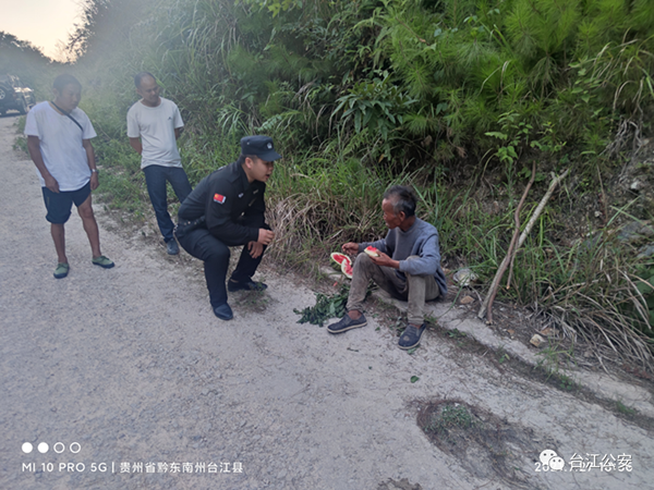 2021年7月27日下午18時許,接到群眾報警稱,在臺江縣排略村公路邊有一名老人近日反反復復在該路段停留,現在老人躺在地上有生命危險請公安機關出警幫助。