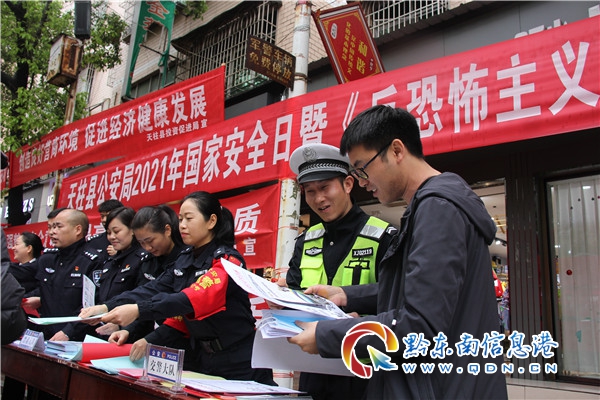 本網訊 2021年4月15日是第6個“全民國家安全教育日”,為深入推進國家安全宣傳教育工作、增強全民國家安全意識。4月15日下午,天柱縣交警大隊聯合特警、禁毒、水利、應急等多部門在縣城中心商業街設置宣傳點開展集中宣傳教育活動。