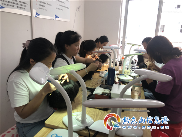 金冠真發廠工序簡單,就業時間靈活,每天能有100多元的收入。目前,已有十多名留守婦女穩定就業,月工資2000元到4000元不等。