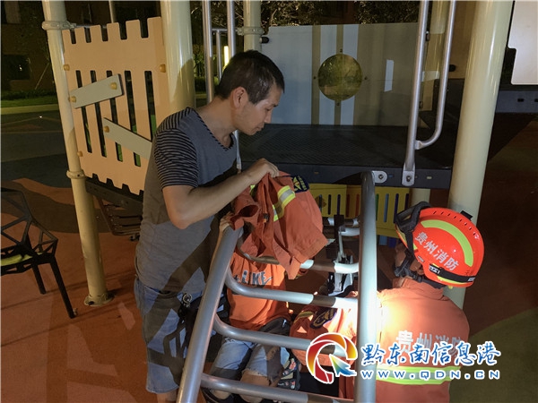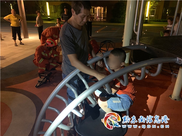 本網訊 7月15日20時29分,天柱縣消防救援大隊接到報警稱,天柱縣東方首府小區后門,有一小孩玩滑梯時頭被卡住,請求幫助。