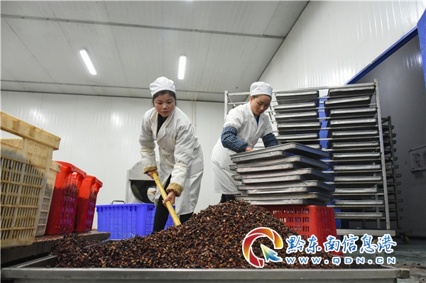 走進貴州同源中藥發展有限公司,工人們正在涼曬、篩選、烘烤、稱重、裝袋、封袋口、裝箱等加工生產。
