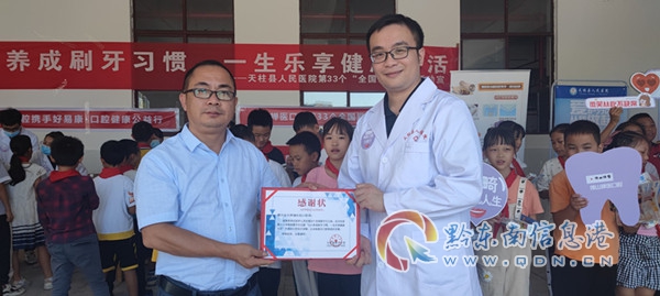 本網訊 為增強幼兒的護牙意識,豐富幼兒的愛牙知識,9月18日下午,廣東省佛山禪城區中心醫院聯合天柱縣人民醫院口腔科到第七小學開展“愛牙日”宣傳教育活動。佛山市禪城區中心醫院對口幫扶駐天柱縣人民醫院口腔科執行主任黃文曦、對口幫扶支教教師潘志軍、李曉菊和天柱縣人民醫院醫務科副科長黃良福組織開展本次活動。