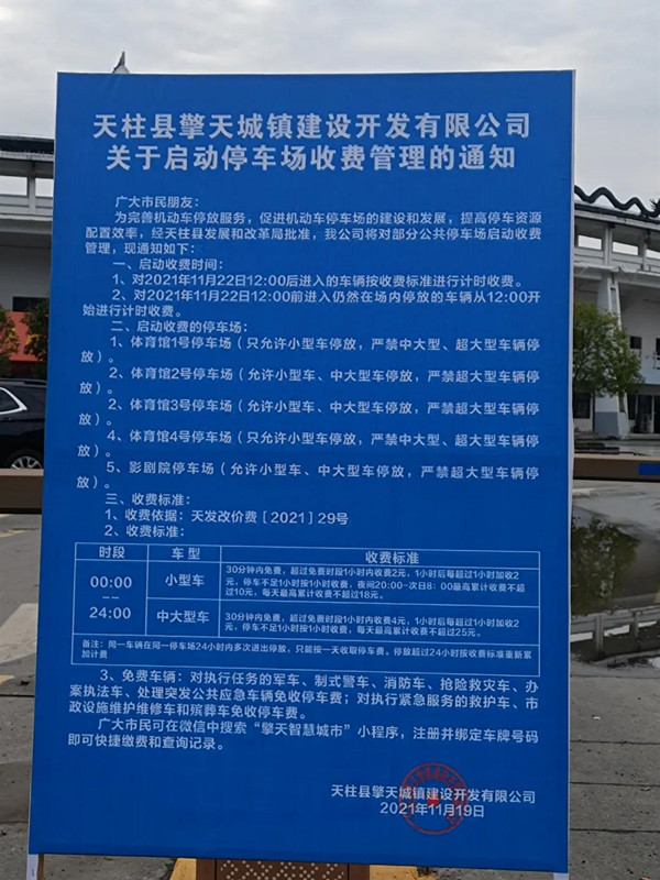 天柱縣體育場的4個停車區及縣影劇院停車場