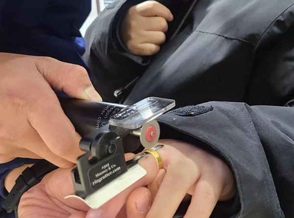 用指環切割機對戒指細心進行切割