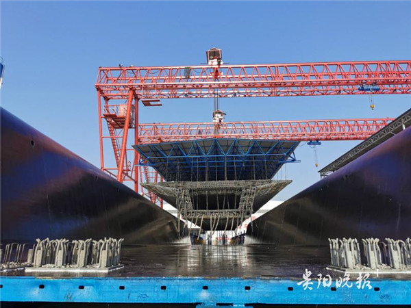 技術(shù)人員說,生產(chǎn)一榀箱梁最快需要 6 小時;每榀箱梁重達(dá) 790 噸,相當(dāng)于 500 多輛小轎車的重量。