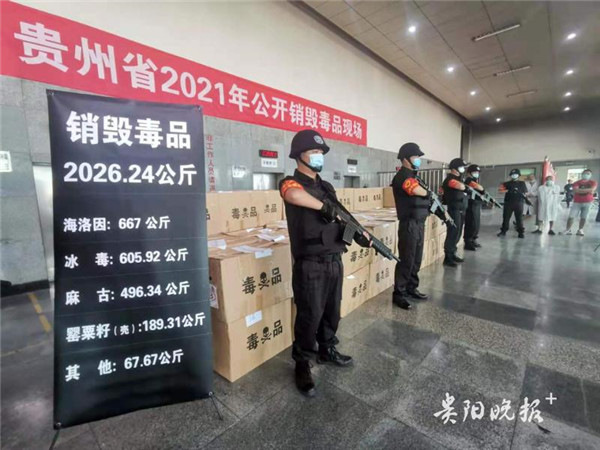 6 月 18 日,貴州省公安機關舉行公開集中銷毀毒品行動,總計 7 車、2026.24 公斤毒品被集中銷毀。據悉,這是貴州省近十年來銷毀毒品最多的一次。