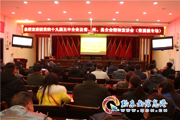 本網訊 1月5日,黨的十九屆五中全會、省委十二屆八次全會、州委十屆十次全會和縣委十二屆八次全會精神縣委宣講團報告會走進青溪鎮,縣委黨校總務主任、高級講師楊志章主講。鎮黨政班子成員,鎮屬股站所負責人,縣部分駐鎮單位負責人,以及各村(居、社區)支書、主任、紀檢員參加會議,會議由鎮黨委書記成元勛主持。