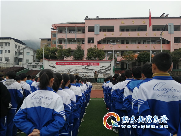 本網訊 3月1日開學第一天,青溪鎮初級中學舉行2021年春季學期 “開學第一課”教育大會。