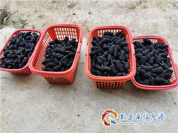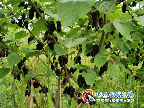 本網訊 五月的清風吹拂著客人的發絲,空氣中飄著果香味。在鎮遠縣羊坪鎮朱砂村子母坡桑葚種植基地里,只見樹上掛滿了烏黑的桑葚果實,惹人垂涎。