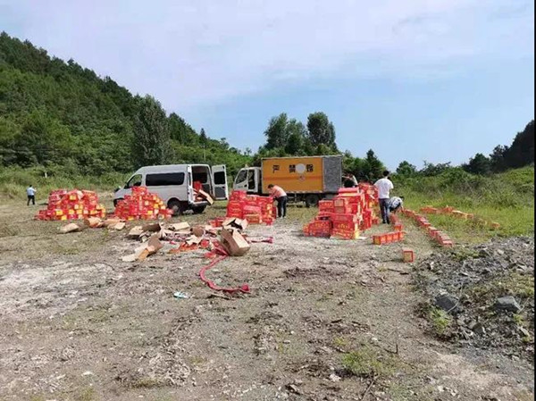 6月23日,鎮遠縣應急管理局聯合鎮遠縣公安局,在鎮遠縣涌溪鄉芽溪村斑鳩坳棄渣場集中銷毀2021年上半年應急、公安部門在煙花爆竹“打非治違”中查處的1477件非法煙花爆竹產品。