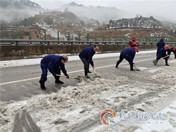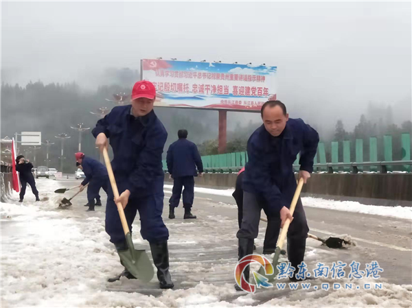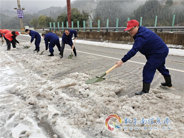 現(xiàn)場經(jīng)從江縣應急管理局救援志愿服務隊15人快速有序的鏟冰除雪作業(yè)后,從江縣城至從江高鐵站方向的弄登大橋路段于2月22日15時36分恢復正常通車,保障了人民群眾的安全出行和按時到站,打造一支應急鐵軍。(龍運翔)