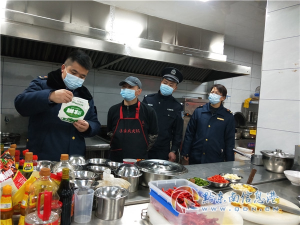 執法人員先后到超市、餐飲店、藥店開展監督檢查。對節日暢銷的糧油、肉類、蔬菜、冷鏈食品、酒、飲料、水果等食品開展檢查,從經營單位證照是否齊全、索證索票落實情況、食品儲存、產品合格證明、食品質量安全、餐用具消毒等逐項開展檢查。同時,督促各經營單位嚴格落實疫情防控各項措施,對接觸冷鏈食品從業人員是否按要求做核酸檢測、餐飲經營單位是否按要求做好從業人員晨檢記錄、冷鏈食品銷售環節是否符合要求、是否存在銷售進口冷鏈食品(含進口水果)、“四類藥品”銷售情況等進行監督檢查。對檢查中發現的超市保健食品未按要求專柜銷售、餐飲經營單位后廚垃圾桶未加蓋及放入保鮮柜中的食材未加蓋保鮮膜等問題,現場責令立即整改。
