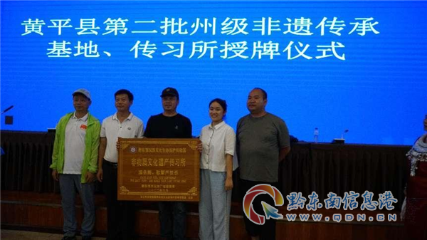 黔東南州第二批非物質(zhì)文化遺產(chǎn)傳習(xí)中心、展示館、傳承基地、傳習(xí)所的單位授牌,他們分別是:谷隴鎮(zhèn)浦江石氏蘆笙制作坊、黃平模貴苗族盛裝廠、黃平縣半山村農(nóng)旅開(kāi)發(fā)有限公司、黃平縣第二中學(xué)、黃平縣賈理傳承基地、黃平縣梅花手工刺繡專業(yè)合作社、黃平縣苗歌傳承協(xié)會(huì)、黃平縣上楓香村,成功為黃平縣喜添11張“州字號(hào)”金牌名片。