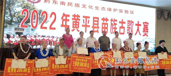 本網(wǎng)訊 為推進(jìn)黔東南民族文化生態(tài)保護(hù)實(shí)驗(yàn)區(qū)建設(shè),提升民族文化自信,豐富群眾文化生活,推動(dòng)文化與旅游深度融合發(fā)展。8月5日,由黃平縣文體廣電旅游局主辦,黃平縣非物質(zhì)文化遺產(chǎn)保護(hù)中心、舊州鎮(zhèn)人民政府承辦的“2022年黃平縣苗族古歌大賽”在舊州鎮(zhèn)隆重舉行。